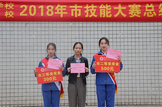 此次大赛中,我校组织12个项目参加技能大赛,刘宏丽、王文琼、丁珍慧三位同学获得一等奖;何佳玲、陈翔、刘显昌获得二等奖;获得三等奖10人次;陈家宝获得教师组三等奖;我校获组织奖。