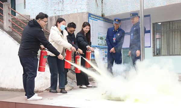 演练结束后,受学校邀请的章贡区八一四大道消防站的钟班长和专业消防人员,现场讲解了灭火器的使用并抽点部分老师和学生现场模拟灭火演练。